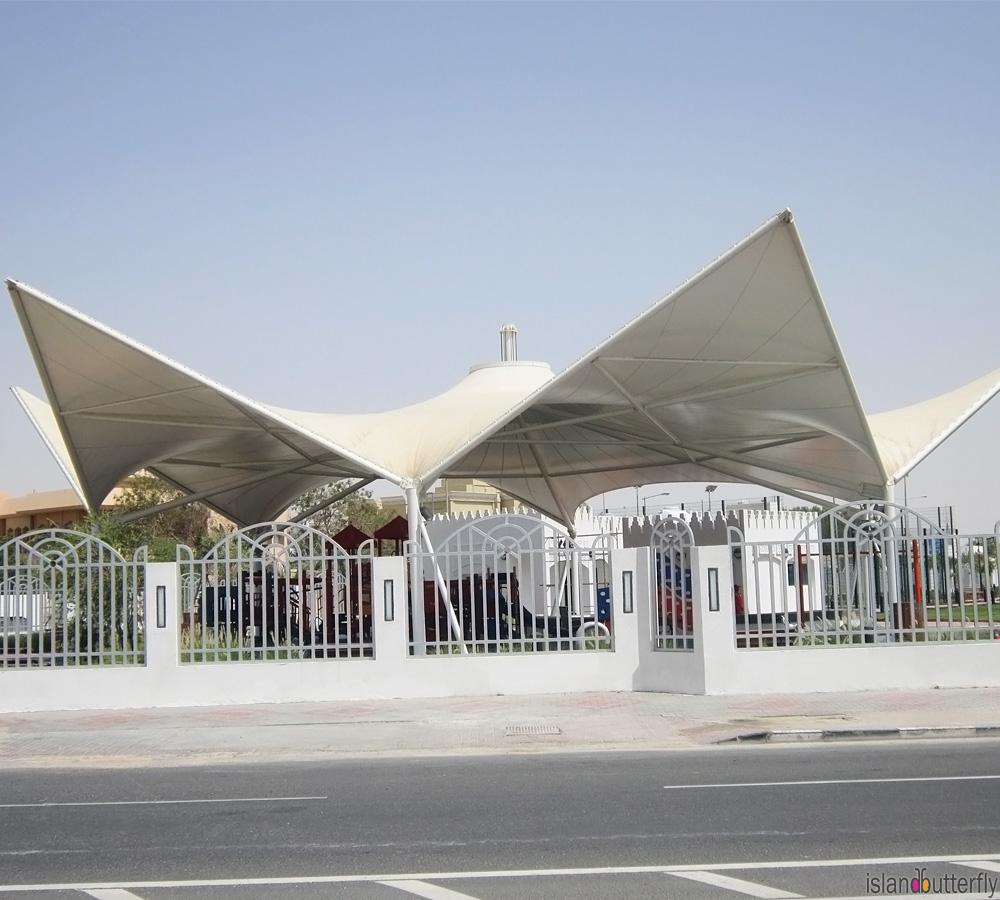 The islandbutterfly New-age Architectural Membrane Structures are installed to detailed specifications. These design friendly structures are used as: